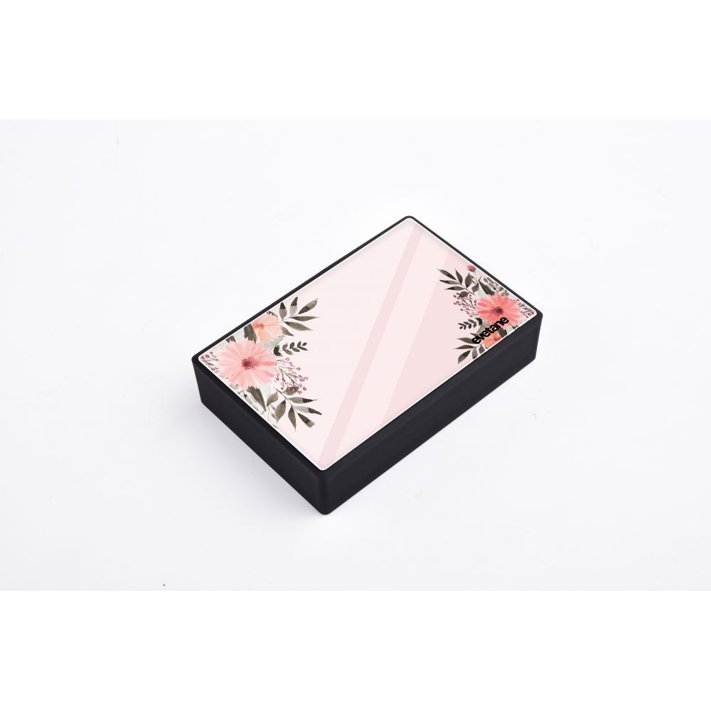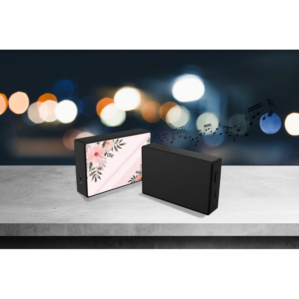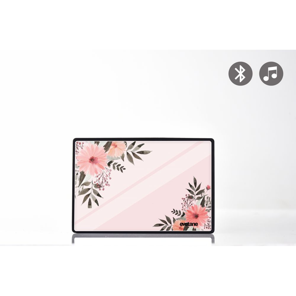 • > Enceinte bluetooth noire avec verre trempé Fleurs roses Evetane