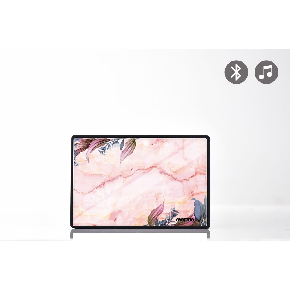 Enceinte bluetooth noire avec verre trempé Marbre Fleurs Evetane