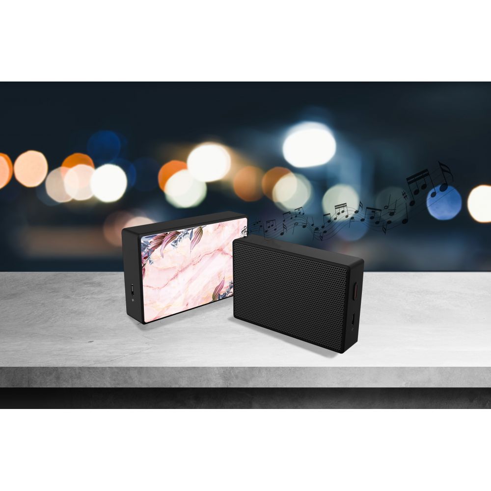 • > Enceinte bluetooth noire avec verre trempé Marbre Fleurs Evetane