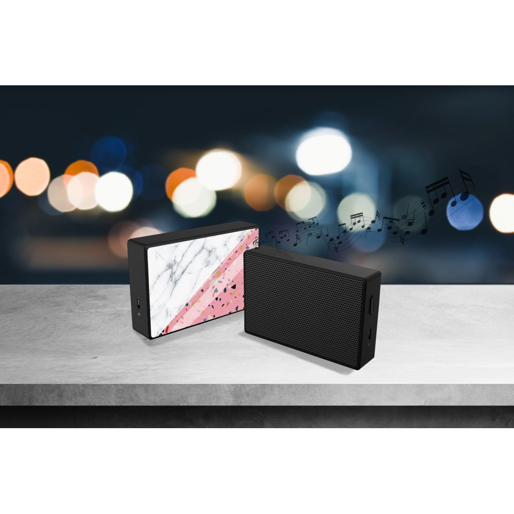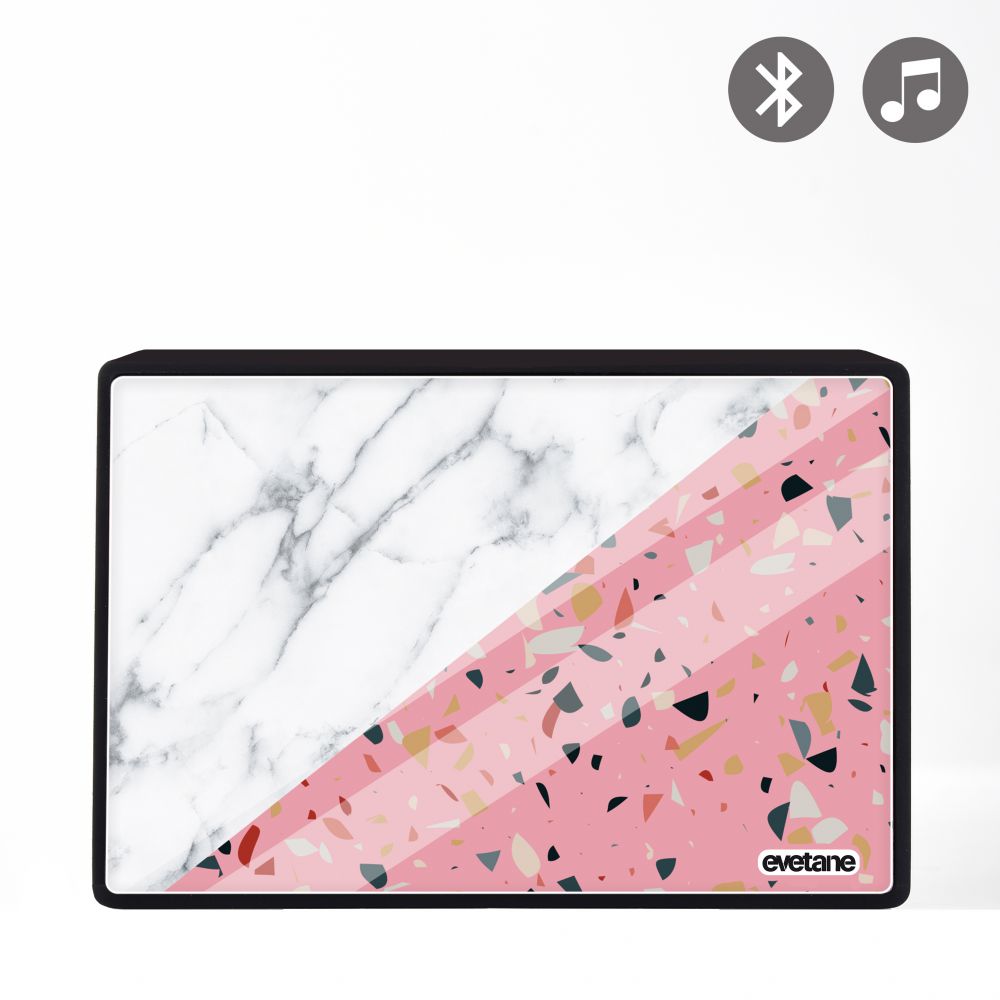 Enceinte bluetooth noire avec verre trempé Terrazzo marbre Blanc Evetane