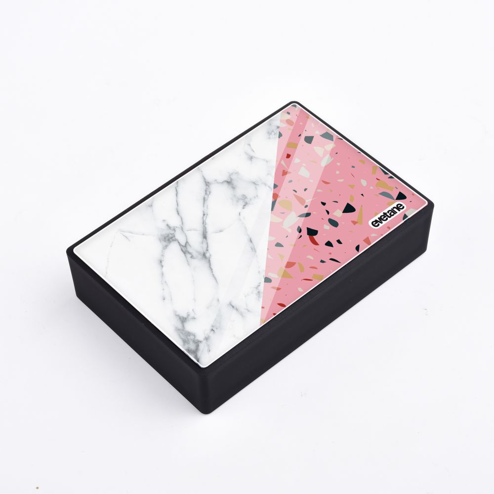 • Enceinte bluetooth noire avec verre trempé Terrazo marbre Blanc Evetane