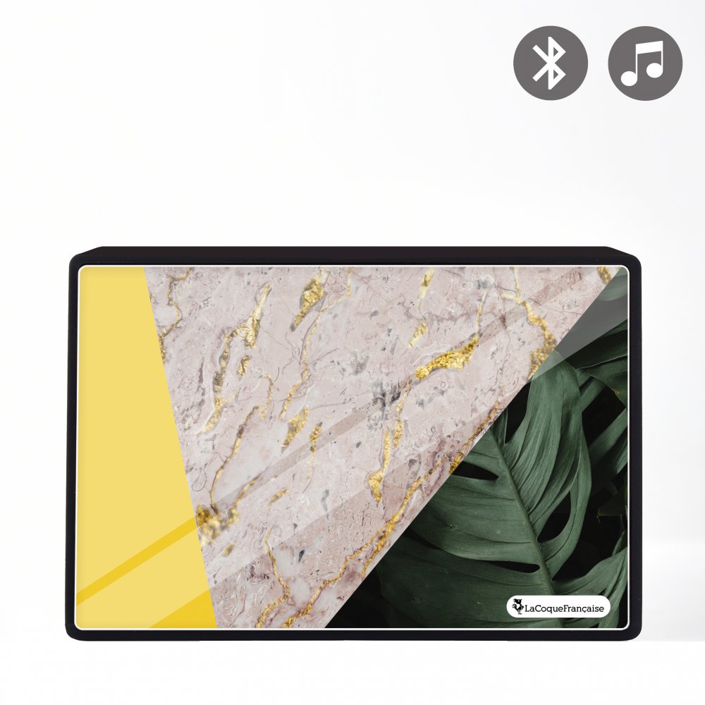 • Enceinte bluetooth noire avec verre trempé Marbre Fleurs Evetane