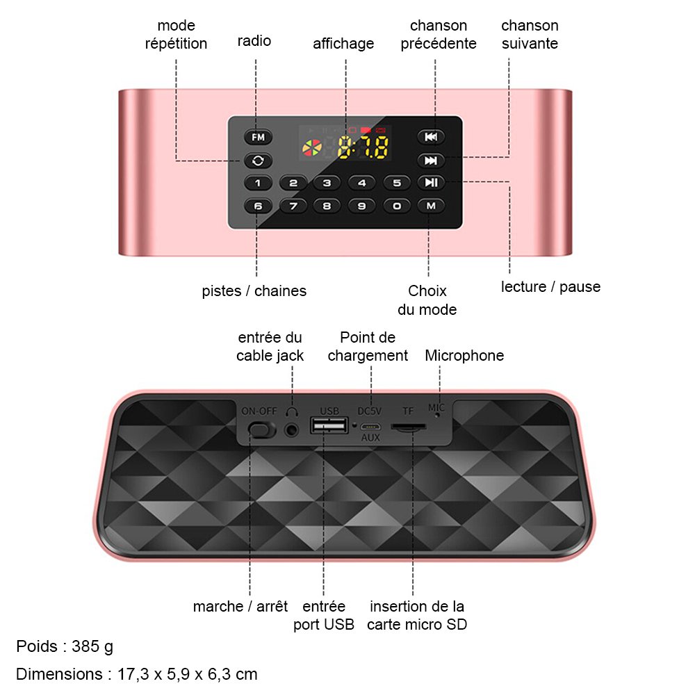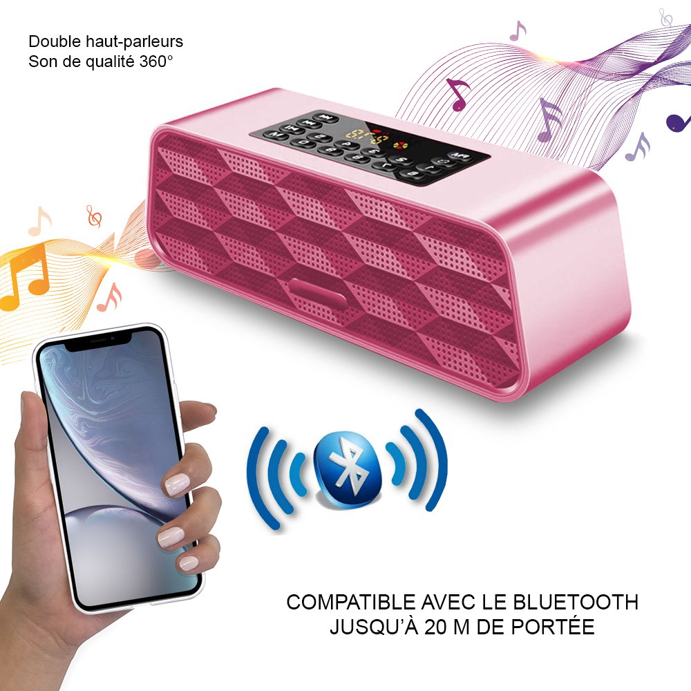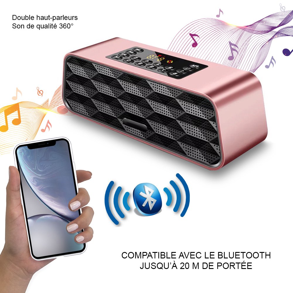 • > High Tech>Audio>Enceintes>Enceinte bluetooth double haut-parleurs rose gold
