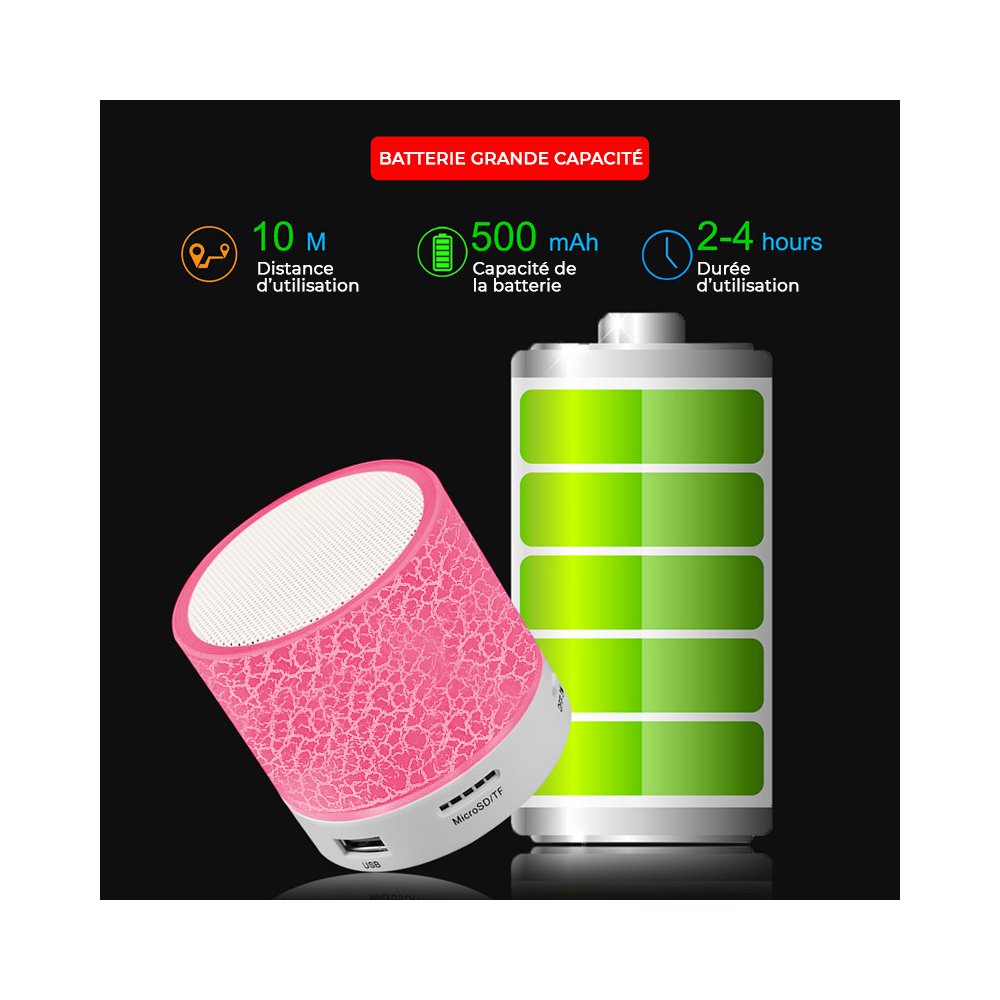 Enceinte effet craquelé sans filCe haut-parleur sans fil portable de bonne qualité est idéal pour écouter la musique ou vos appels.Cet effet craquelé donne un design cool au produit et apportera une touche déco à votre intérieur.Produit haut de gamme améliorée avec le réglage du volume, le bouton suivant et microphone frontaux et avec la fente pour carte mémoire micro sd / tf.Cette enceinte, ayant l’avantage d’être sans fil, vous accompagnera partout et animera vos soirées, anniversaires …..Compatible avec iPhone, iPad, iPod, smartphones et tablettes Samsung Galaxy ...