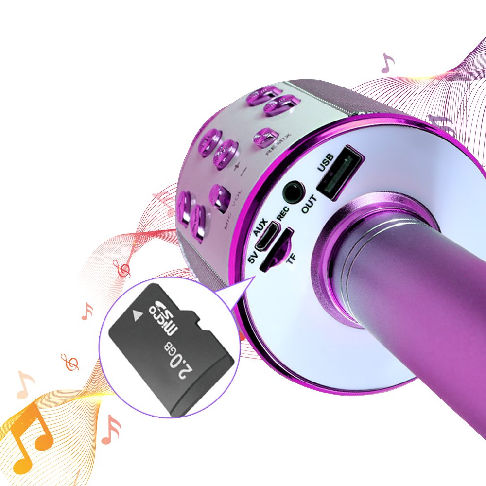 Micro Karaoké bluetooth :Grâce au design léger, vous pouvez l'emporter où vous le souhaitez sans chercher dans une salle de karaoké. D'ailleurs, vous pouvez l'utiliser comme un microphone sans fil et un haut-parleur Bluetooth. 5W haut-parleurs intégrés vous offrent des effets de concert Connexion via Bluetooth, le microphone karaoké sans fil peut facilement se connecter via Bluetooth à tout appareil muni du bluetooth. Grâce à sa fonction de mémoire,la connexion Bluetooth précédente sera automatiquement activée lorsque vous allumez le microphone. Profitez de vos soirées grâce à ce micro à la fois en écoutant votre musique et en chantant. CaractéristiquesPuissance de sortie: sortie casque 10mw sortie haut-parleur 5wConfortable de charge: DC5VGamme de fréquences: 100mhz-10000mhzNiveau de pression acoustique maximal: >115db 1khz THD<1%Mode de réverbération: l'écho est la réverbération activeAlimentation: batterie 18650 intégréeCapacité de la batterie: 1800MahVersion Bluetooth: Bluetooth 4.0, transmission stable, faible consommation d'énergie