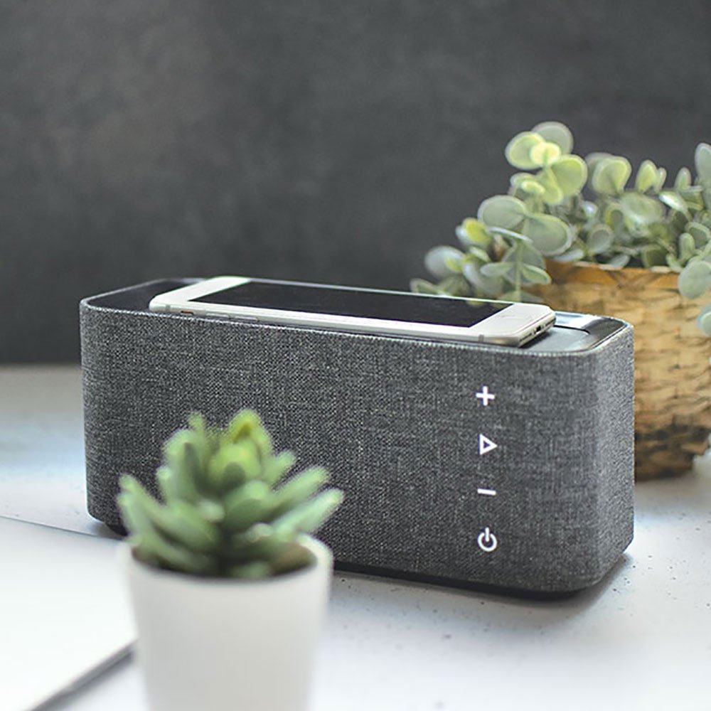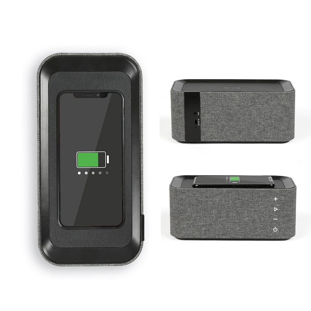 • > High Tech>Audio>Enceintes>Enceinte Bluetooth avec chargeur à induction charge rapide - Grise