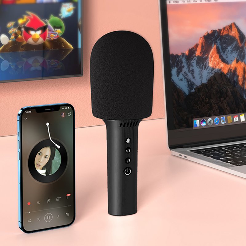 Micro Karaoke avec enceinte Bluetoothfonction karaoké, modulateur vocal (3 modes),fonction écho, haut-parleur, contrôledu volume, rétroéclairage LED