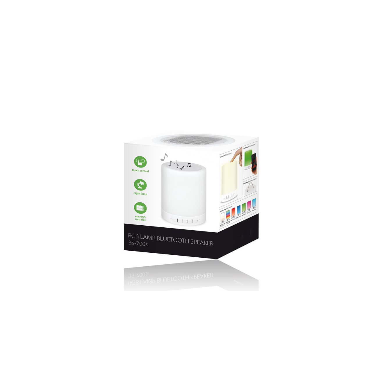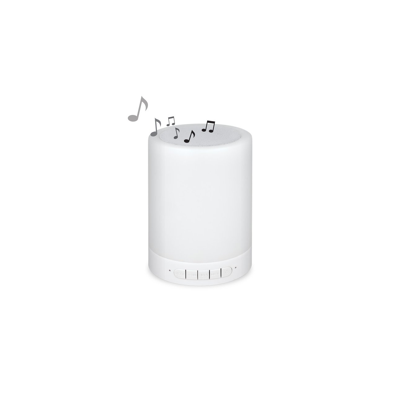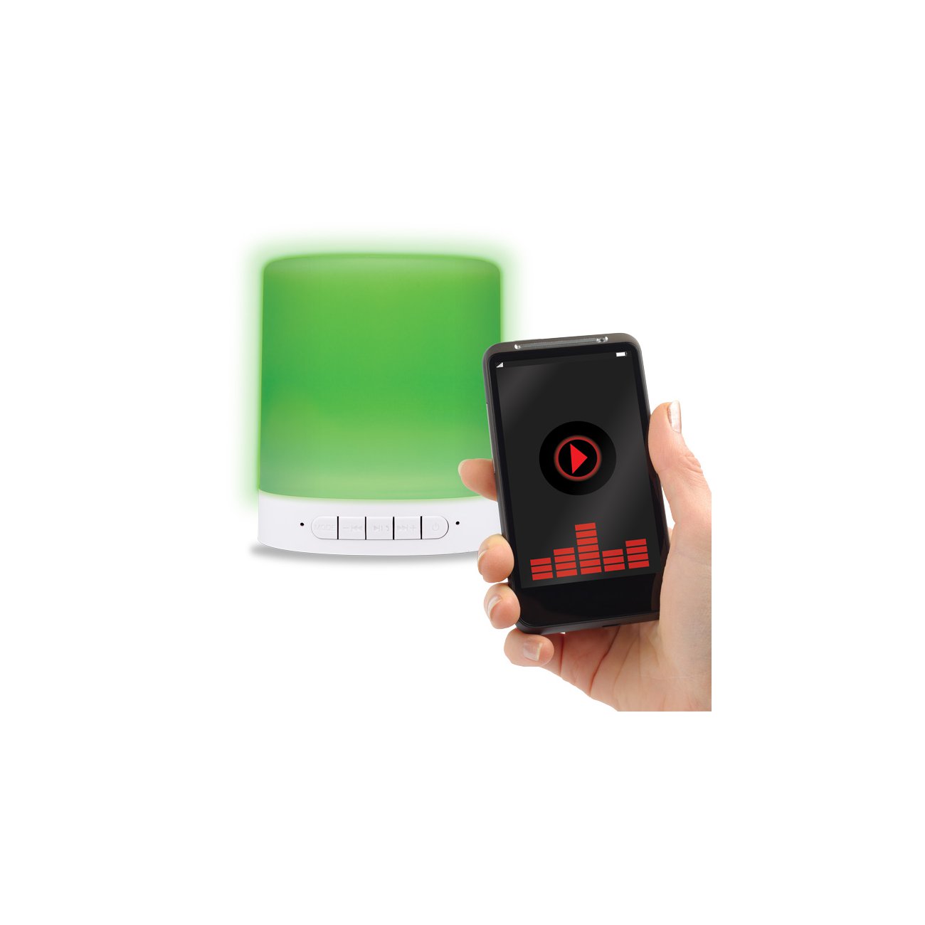 Profitez de la musique grace à ce haut-parleur Bluetooth avec lampe colorée! Pour changer les modes de lumière, vous devez toucher le haut-parleur à l'aide de votre doigt. Choisissez parmi 3 niveaux de luminosité et 6 types de couleurs (rouge, bleu, vert, rose, teal couleur et mélange de couleurs). Avec le haut-parleur, vous pouvez lire vos morceaux préférés de 3 façons : Bluetooth, câble AUX et lecteur de carte MicroSD intégré. La fonction haut-parleur vous permet de répondre et de faire des appels téléphoniques. La capacité est de 2 000 mAh, ce qui correspond à 6 heures d'autonomie de votre musique préférée et vos impressions visuelles!
