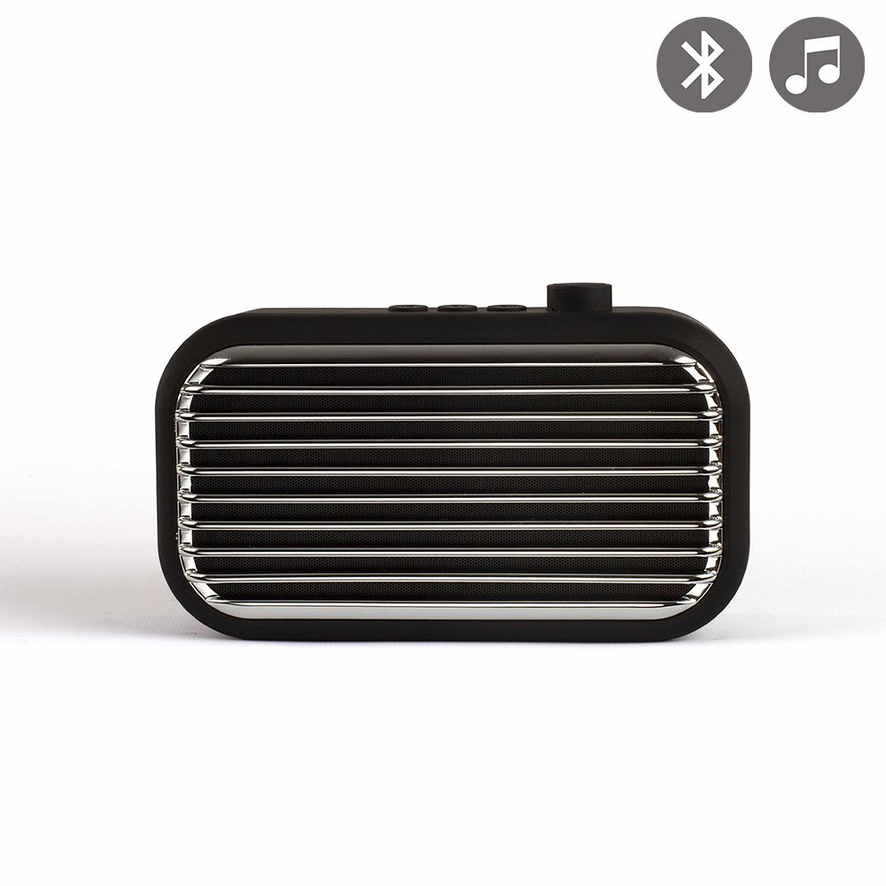 Haut-parleur Compatible Bluetooth ® Puissance 5W Compatible tous Smartphones Batterie lithium rechargeable 400 mAh Autonomie 2h en écoute Portée jusqu’à 10 m Câble de chargement USB inclus