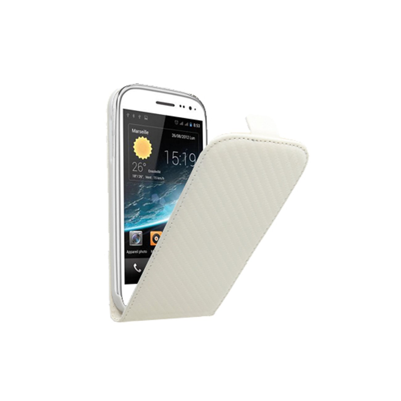 • > High Tech>Etuis>Etui Portefeuille Rabat Carbonne Blanche pour Wiko Slim