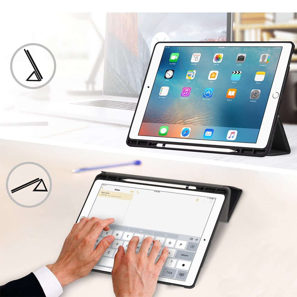 Etui de protection pour iPad Cet étui permet de donner une bonne protection à votre iPad avec emplacement pour le stylet afin de ne pas l'égarerLa coque dispose fonction Veille/Réveil Automatique lorsque vous fermez/ouvrez votre étui. Bande magnétique intégrée, réveille automatiquement ou met votre tablette en veille lorsque le couvercle est ouvert et fermé. Facile et pratique à utiliser.Grâce au rabat de protection vous pouvez l'utiliser en tant que support de visualisation et ainsi il convient pour regarder et lire. Design arrière en TPU léger, tout permet de protéger votre tablette des rayures et des chutes.Compatible iPad 9,7 référence au dos de votre iPad à regarder avant votre achat A1673-A1674-A1674-A1822-A1823-A1566-A1567- A1893-A1954-A1474-A1475-A1476