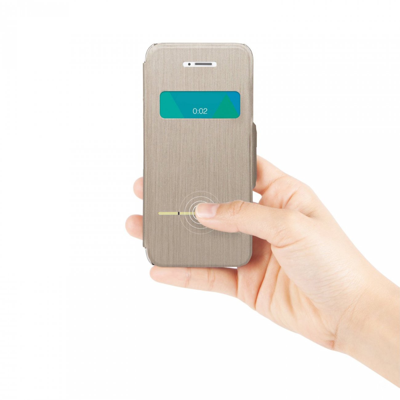 La fenêtre du haut vous permet d'avoir un accès visuel à l'écran tandis que la ligne métallique tactile vous permet de déverrouiller votre Smartphone pour prendre les appels sans devoir ouvrir le clapet.