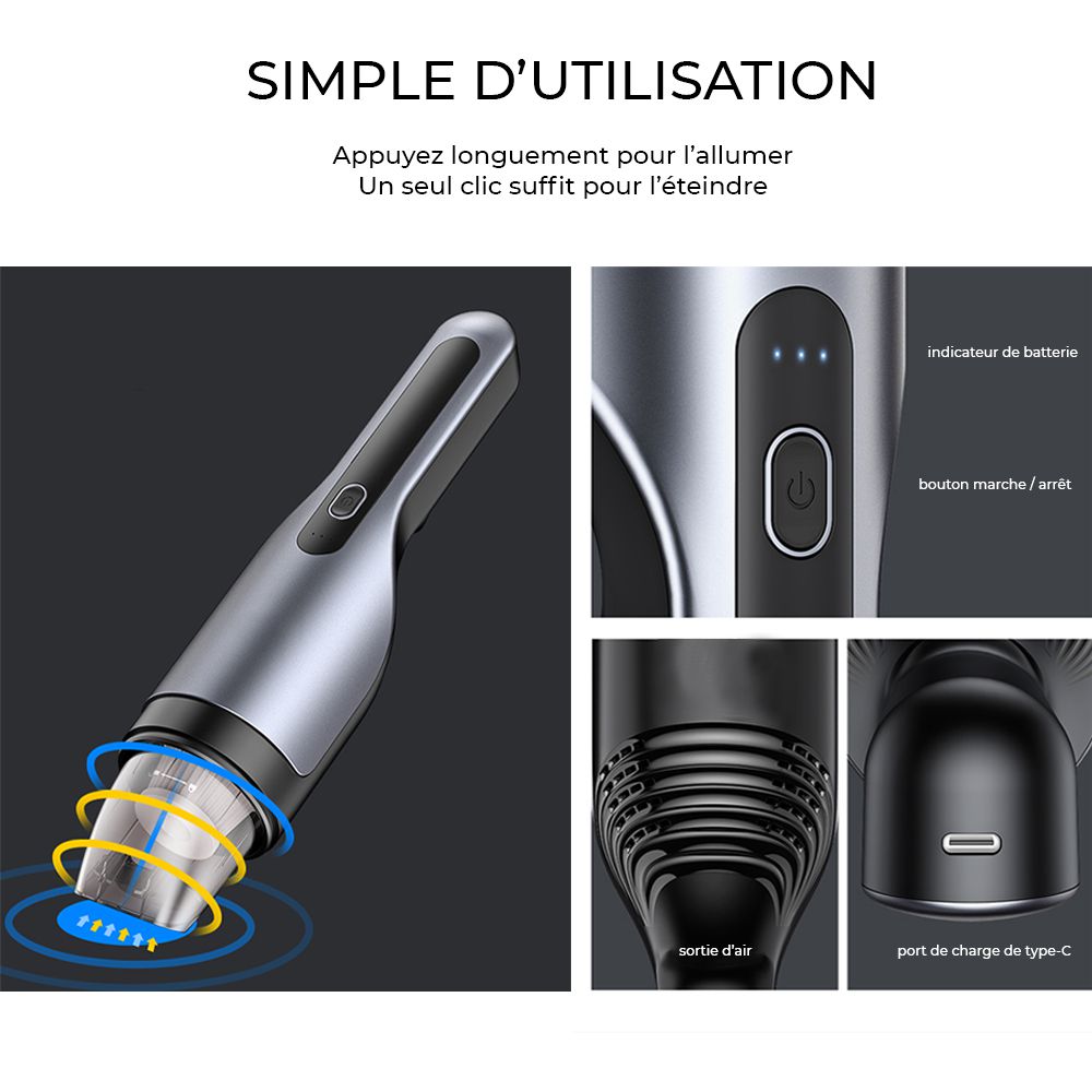 • Mini aspirateur sans fil portatif