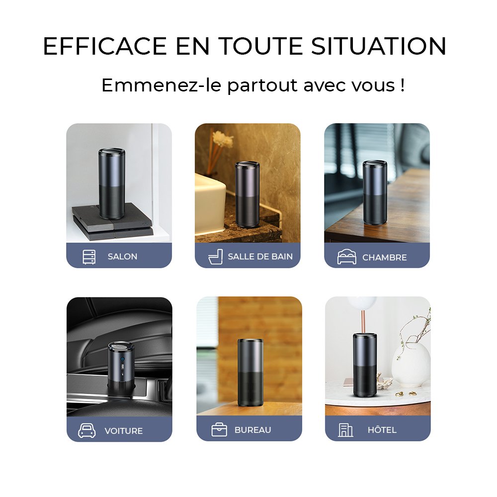 Purificateur d'air portable noir métalisé peut éliminer 99,9% des bactéries Améliorez la qualité de l'air et restez en bonne santé.Filtre HEPA H13, filtrant efficacement les polluants atmosphériques.Large application, pour une utilisation à la maison / voiture / bureau / voyage.Fonctionnement ultra-silencieux, fonction d'aromathérapieLongueur d'onde ultraviolette: UVC 260-280nmDurée de vie de la lampe LED: 10000hFiltre: Filtre HEPA H13Durée de vie du filtre: 500hVentilateur: Turbo FanBruit: <38dBCoque: ABS + alliage d'aluminiumMicro entrée: 5V⎓1ASortie USB: 5V⎓1ATempérature de fonctionnement: ﹣10 ℃ ~ 45 ℃Poids: environ 266gTaille: 65 * 170 mm (diamètre * hauteur)Fonctionnalités:1. Stérilisation UVC, essuyez 99,9% des bactéries.2. Filtre HEPA H13, filtrant efficacement les polluants atmosphériques.3. Large application, pour une utilisation à la maison / voiture / bureau / voyage.4. Fonctionnement ultra-silencieux, fonction d'aromathérapie.