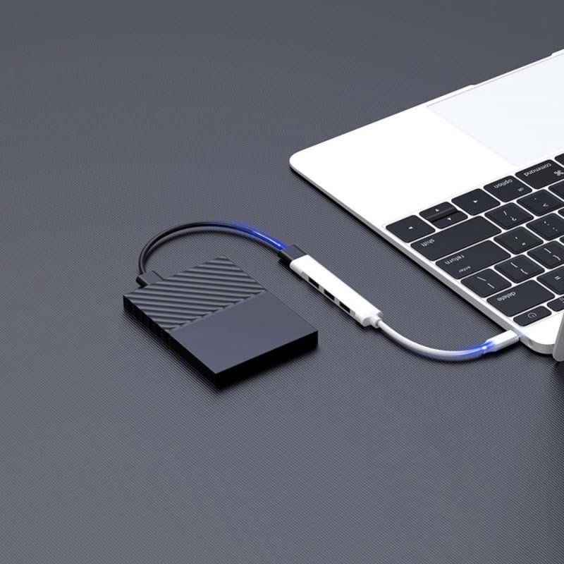 Adaptateur Type C pour Ordinateur avec 4 Sorties USB L'adaptateur est principalement utilisé pour l'extension d'ordinateurs portables avec une entrée Type C. Grâce aux sorties USB vous pouvez adapter vos différents appareils. Il permet de connecter les appareils USB (clavier, souris, clé USB, disque dur, contrôleur de jeu...) à vos téléphones et tablettes qui ont un port Type C. Il supporte le transfert de données jusqu’à 5Gbps pour transférer vos données.