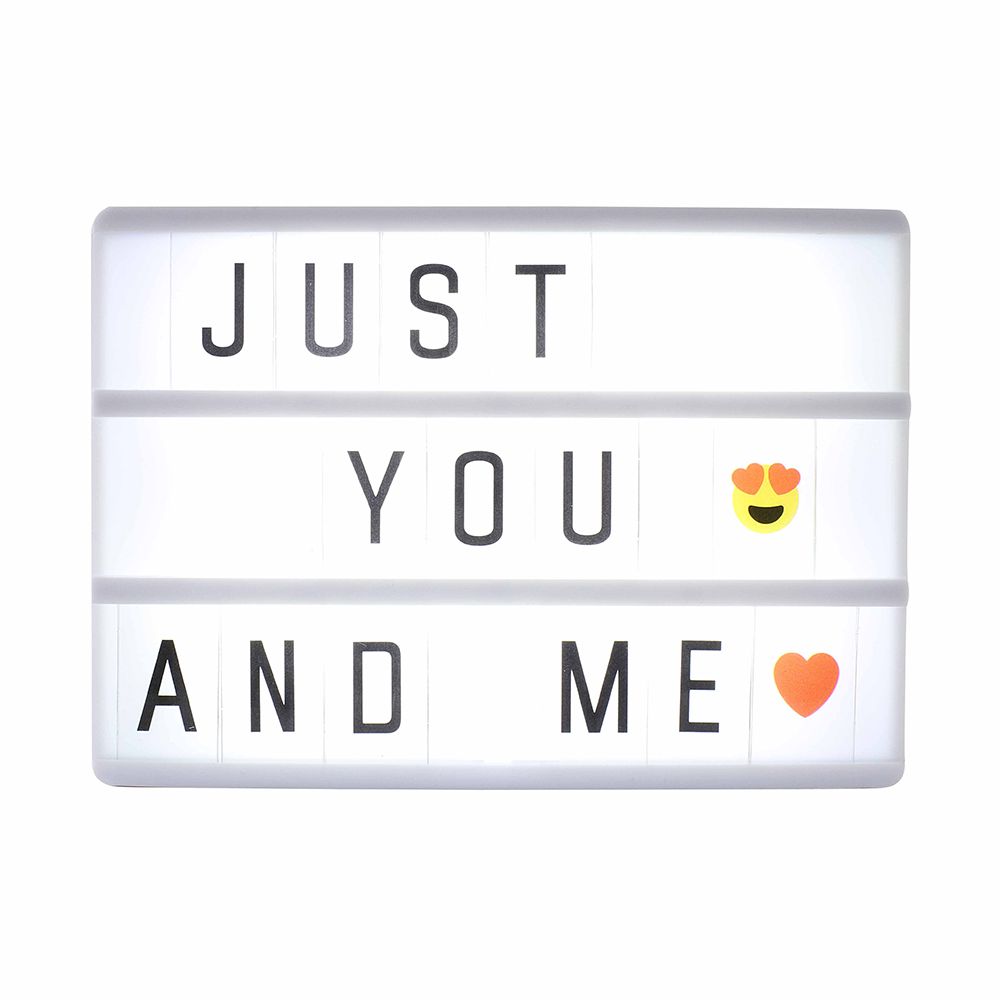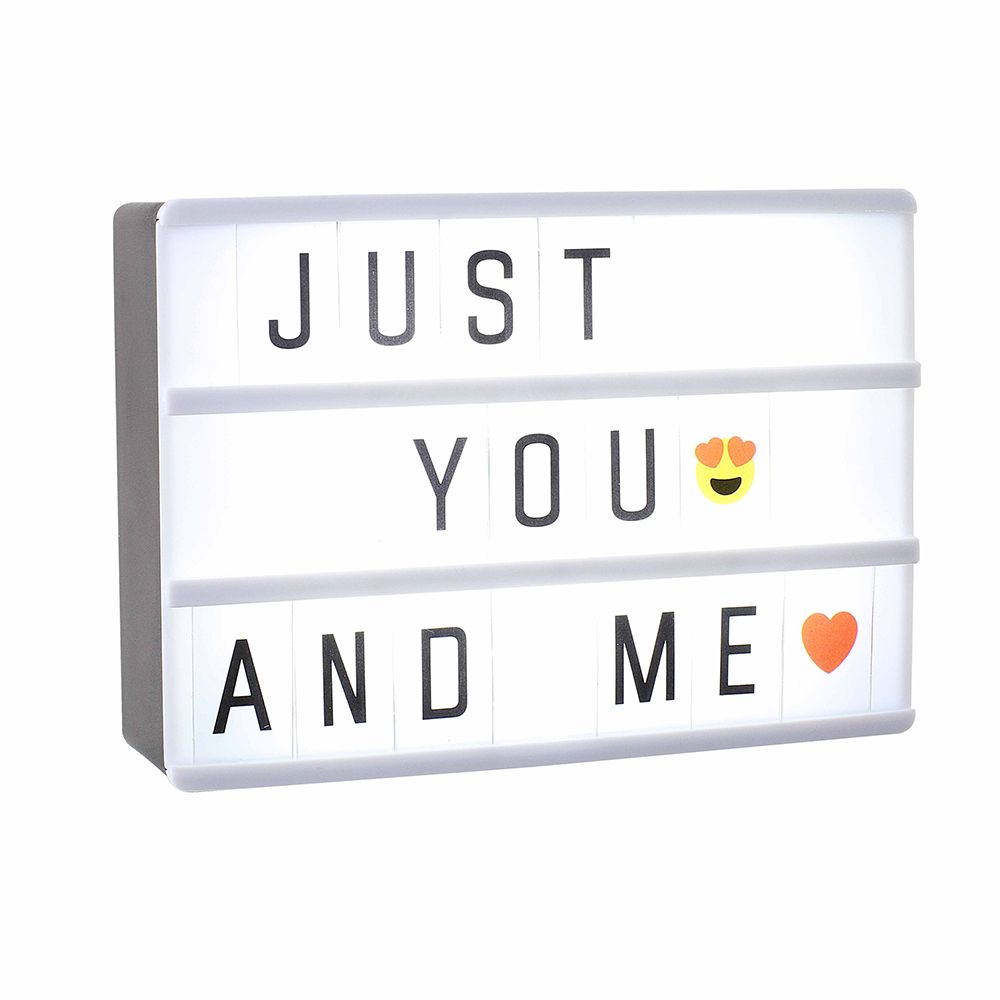 Mini boite lumineuse à messagesPour personnaliser vos messages 90 lettres et symboles, 8 LED,Format A6 90 lettres et symboles : 4 x A, 2 x B, 2 x C, 3 x D, 4 x E, 2 x F, 2 x G, 3 x H, 3 x I , 2 x J, 2 x K, 2 x L, 2 x M, 3 x N, 4 x O, 3 x P, 1 x Q, 3 x R, 2 x S, 2 x T, 3 x U, 2 x V, 2 x W, 1 x X, 3 x Y, 1 x Z, 1 x @ , 1x ! , 1x ?, 1 x # , 1 x &, 1 x coeur coloré , 5 x smileys colorés, 1 x balon, 1 x champagne , 1 x smiley pouce 1x €,1 x note de musique, 2x 1, 2x 2, 1x 3, 1x4, 1x5, 1x6, 1x7, 1x8, 1x9 -1 carte insert transparent pour marquage divers -2 trous pour accroche murale