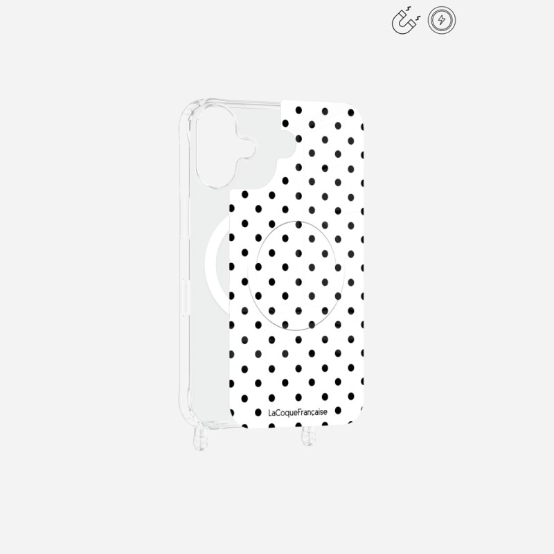 • > Plaque magnetique iPhone 16 Plus Pois noir La Coque Francaise.