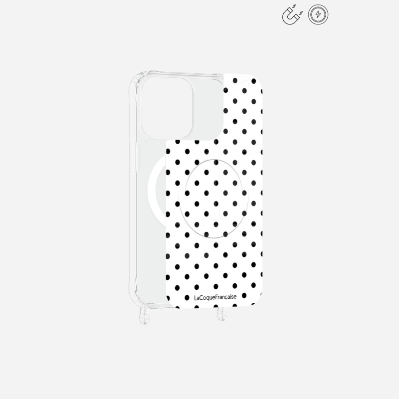 • > Plaque magnetique iPhone 15 Pro Max Pois noir La Coque Francaise.