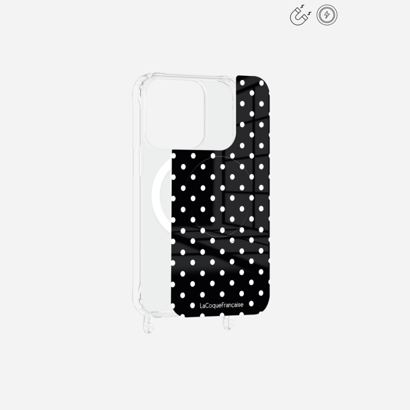 Nouveau Plaque magnetique iPhone 15 Pro Pois blanc La Coque Francaise.