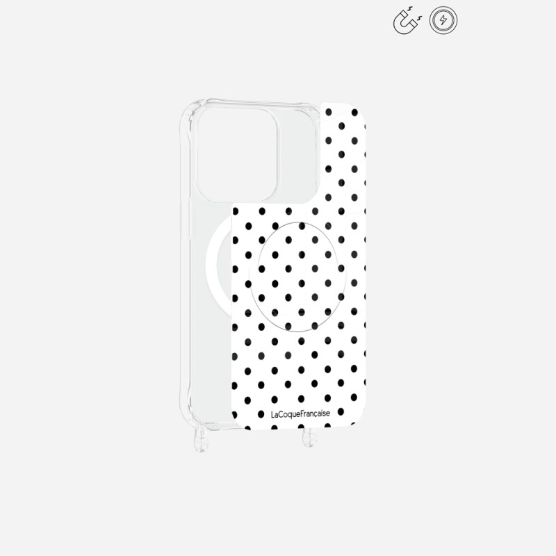 Nouveau Plaque magnetique iPhone 15 Pro Pois noir La Coque Francaise.