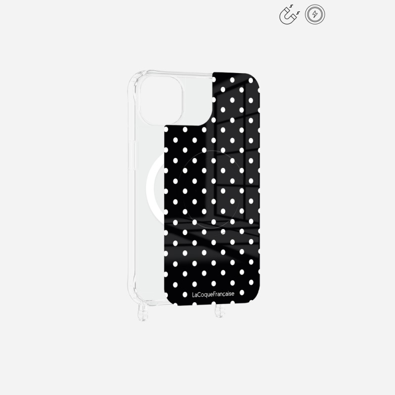 Plaque magnetique iPhone 15 Plus Pois blanc La Coque Francaise.
