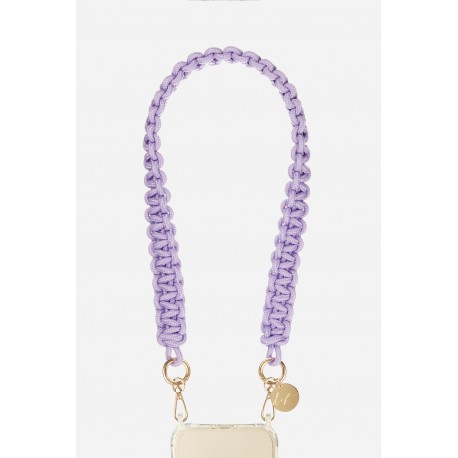 Lanière Sangle Robby 60 cm violet en cordon tressé avec mousquetons dorés