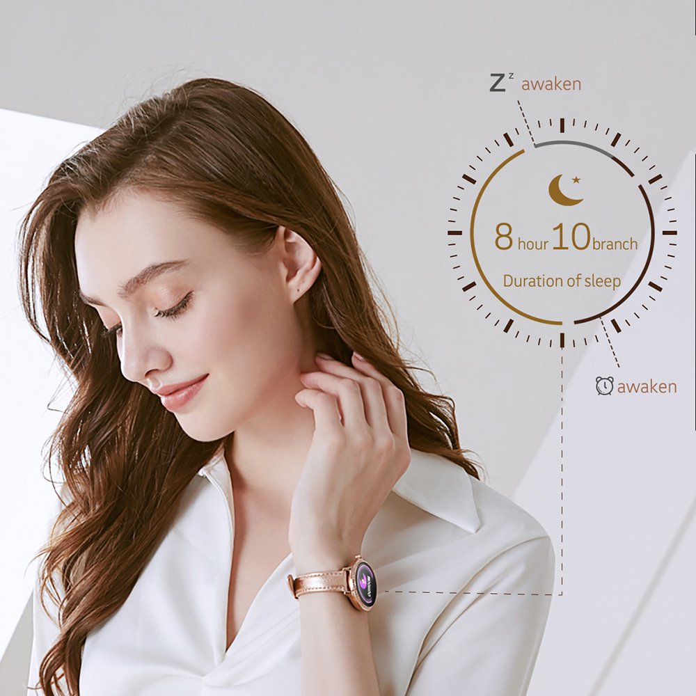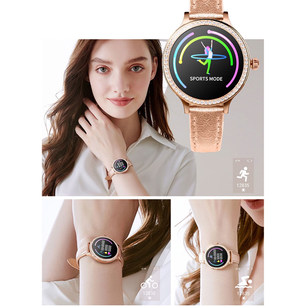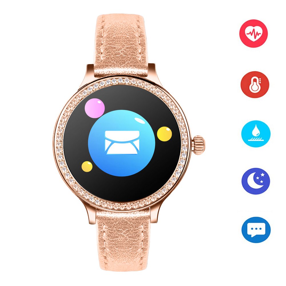 • Montre connectée féminine IP68 avec tracker de sommeil - ecrand diamant Or