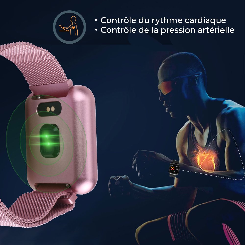 • Montre connectée bluetooth avec capteur cardiaque Rose