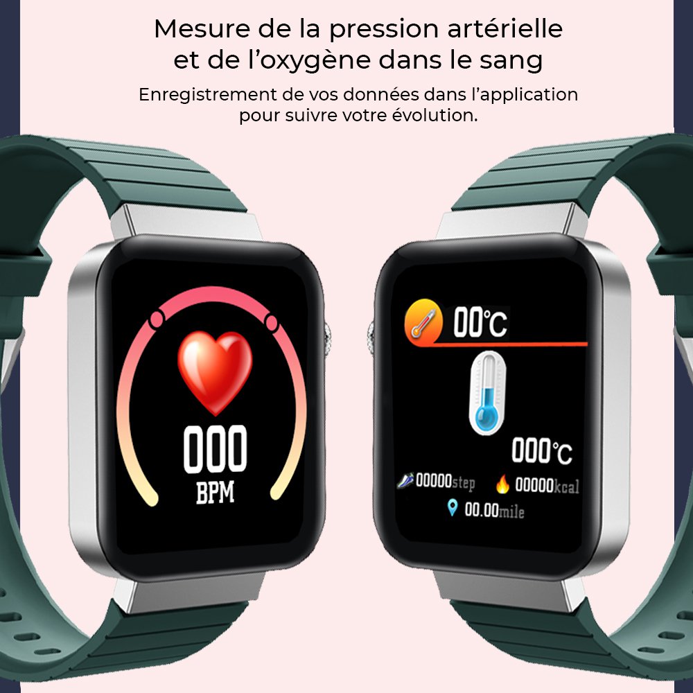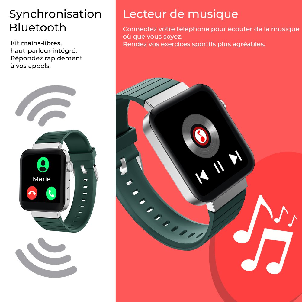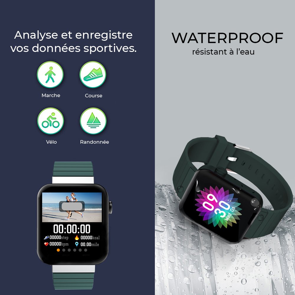 • Montre connectée avec suivi d'activités compatible iOs et Android - Verte