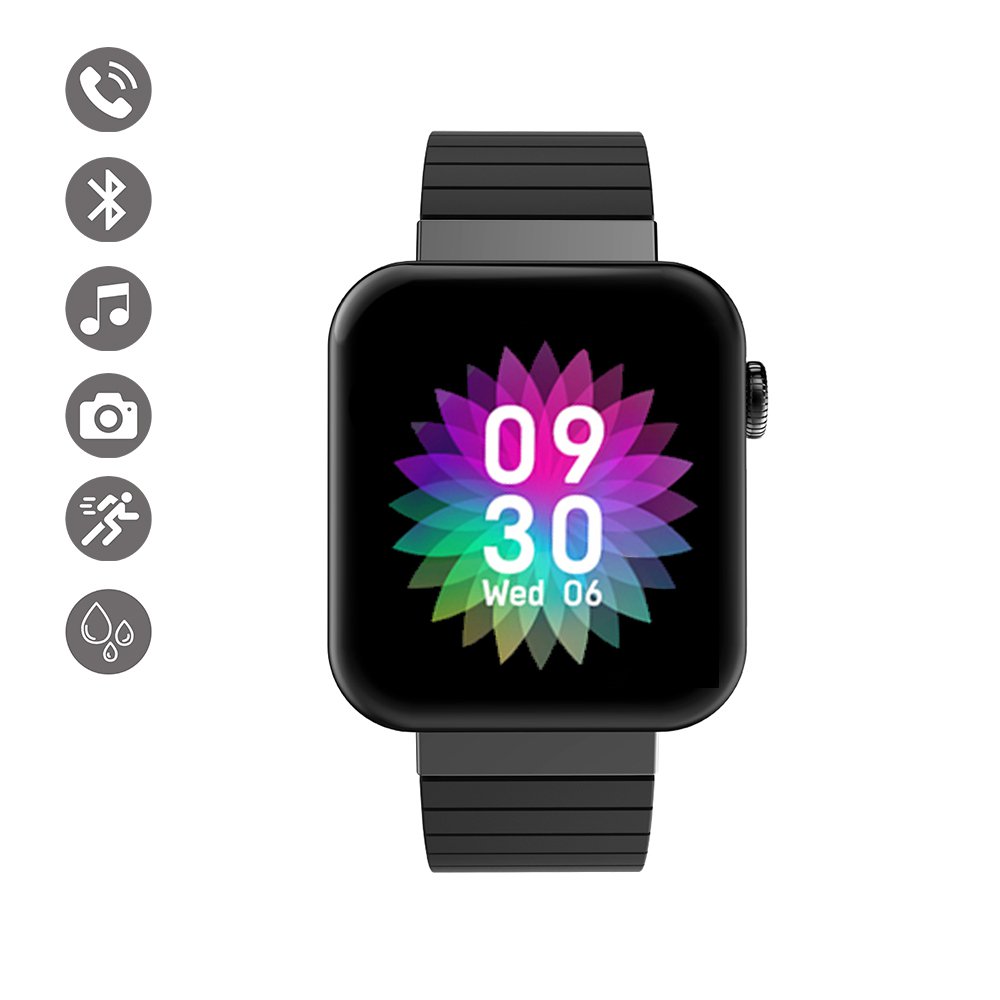 • Montre connectée avec suivi d'activités compatible iOs et Android - avec bracelet en metal noir
