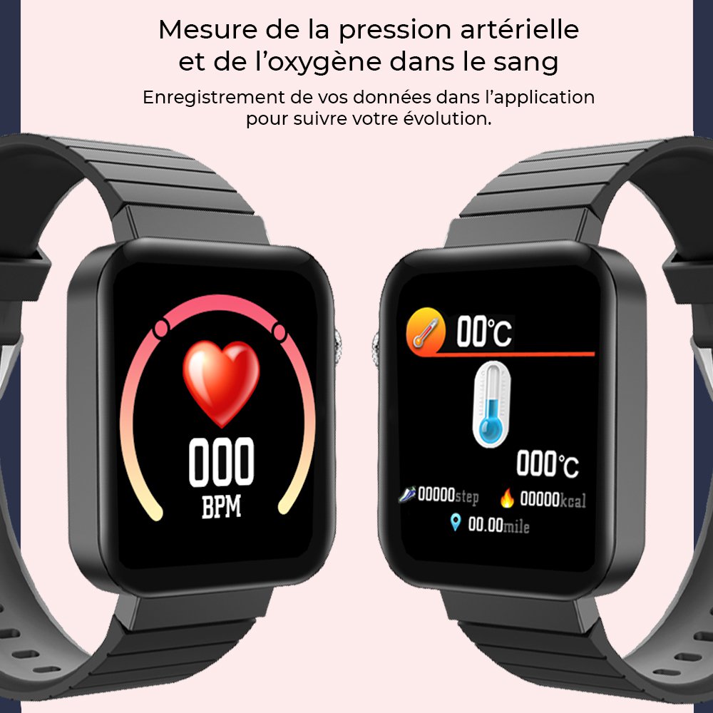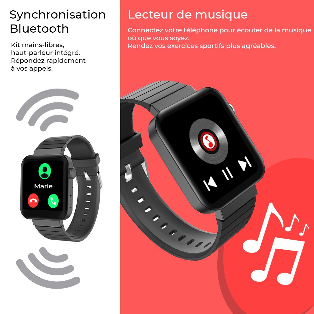 • Montre connectée avec suivi d'activités compatible iOs et Android -  Noir