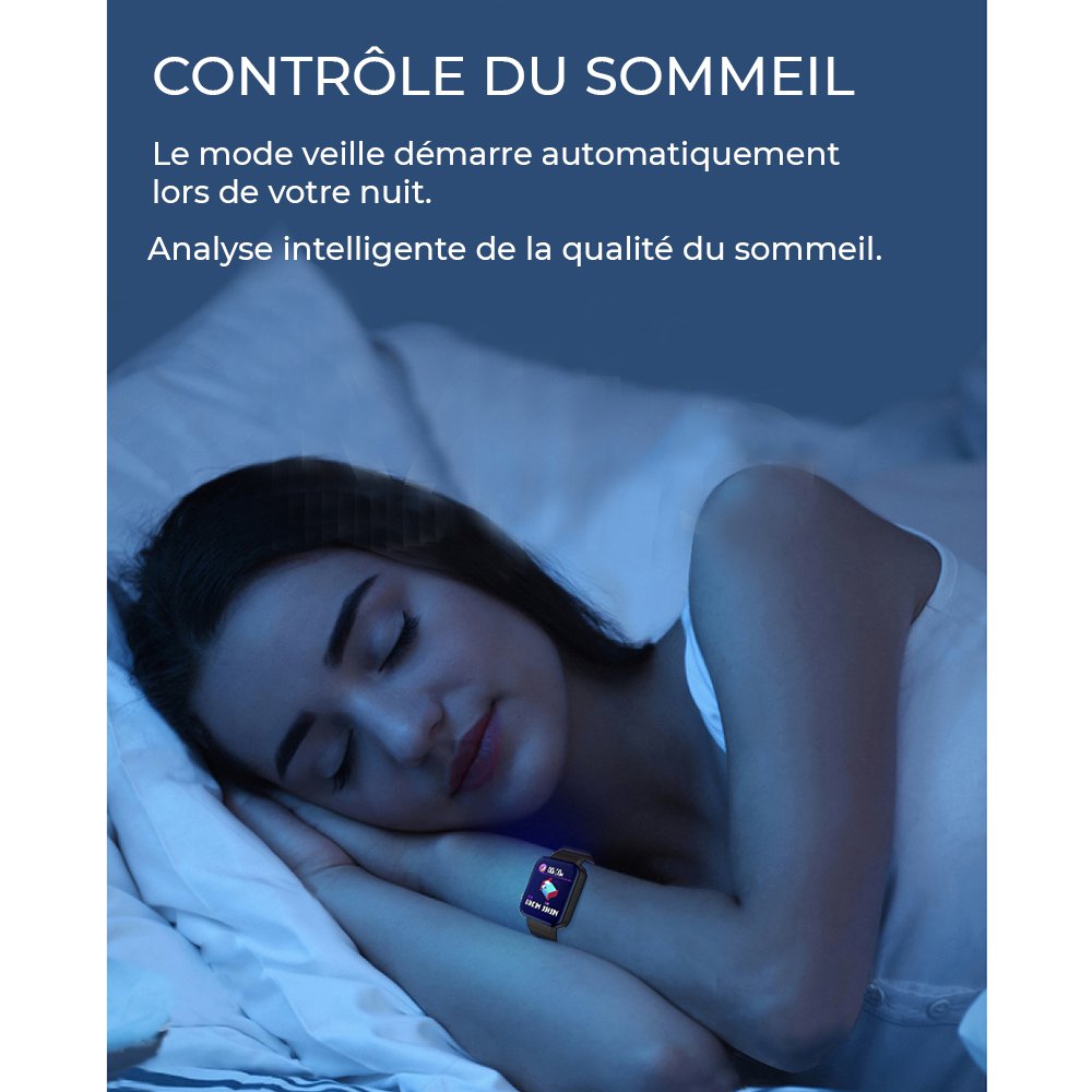 Montre connectée IP67 avec moniteur de fréquence cardiaque,multisport,contrôle de la musiqueFonctions : notification appel grâce au Bluetooth / surveillance de l'activité sportive/ surveillance de la fréquence cardiaque / rappel intelligentCaractéristiquesAppel téléphonique et synchronisation Bluetooth : grâce au haut-parleur intégré et au Bluetooth répondez rapidement à vos appelsappel SOS d'urgence : synchroniser les contacts du téléphone et définir comme appel SOS, Numérotation rapide en cas d'urgenceSupporte un affichage long et lumineux : Choix parmi différents horaires de styleMesure de la fréquence cardiaque en temps réel : Surveillance de la fréquence cardiaque en temps réel à tout moment, Calculez intelligemment les données de pression artérielle et d'oxygène et enregistrez-les dans l'applicationRegardez votre fréquence cardiaque changer / capteur de fréquence cardiaque au poignet /Surveillez votre fréquence cardiaque la veille en temps réel pendant l'exercice.Une mesure de la pression artérielle / oxygène sanguinAnalyse de mouvement intelligente dans ReachIP67 étancheMode multisports : Prise en charge de sports tel que course / marche / escalade / cyclisme . Surveillance, analyse et enregistrement personnels en temps réel. Faites connaître à tout moment les résultats des sports, améliorez l'effet d'entraînement scientifique.Rendez un entraînement plus efficace que ce soit dans la salle de sport ou à l'extérieur Contrôle/Surveillance du sommeil: Démarrez automatiquement la surveillance la nuit, surveillance et analyse intelligente de la qualité du sommeil. Charge magnétique Configuration de charge par aspiration magnétique forte endurance Absorption magnétique automatique Lecture de musique Synchronisée : Connectez votre téléphone pour écouter de la musique en déplacement Rendez l'exercice plus agréableControle de l'appareil photo, caméra : Sports / voyages et autres activités de plein air pour vous aider à prendre des photosSurveillance du sommeilBouton multifonctionsIP67 étanche Conception de structure de précision étanche Imperméable à l'usure quotidienneAppel téléphonique Bluetooth Synchronisé mains libres partout