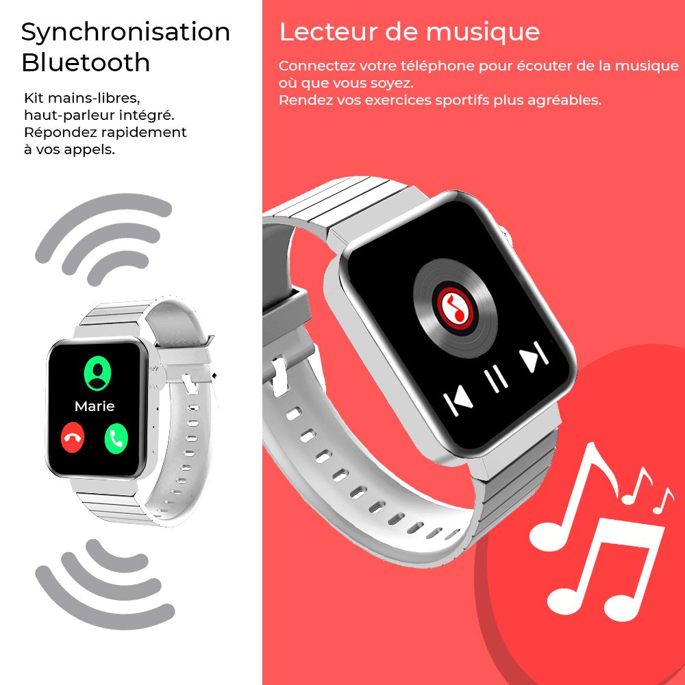 • Montre connectée avec suivi d'activités compatible iOs et Android - Blanche
