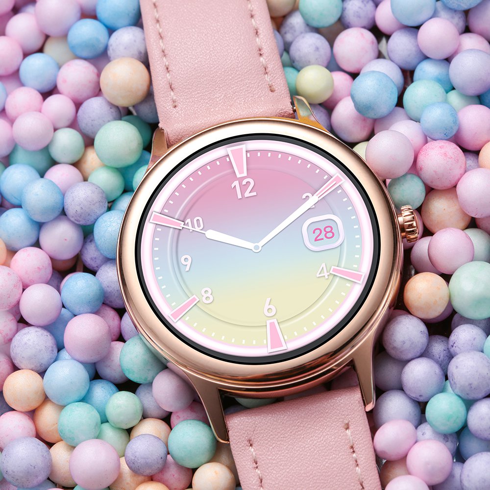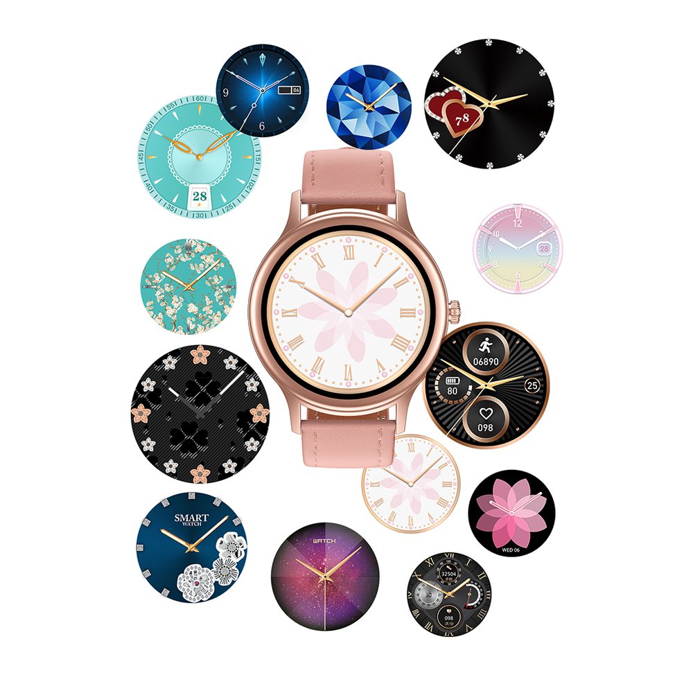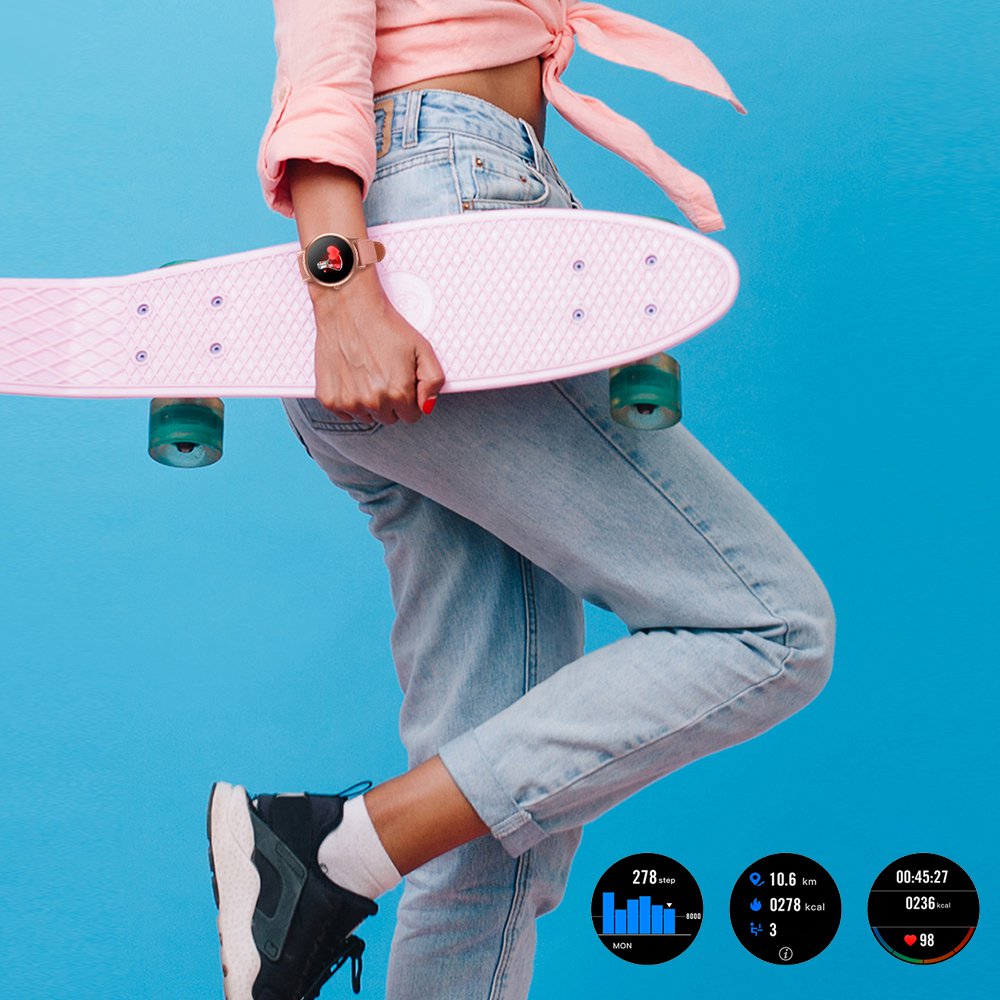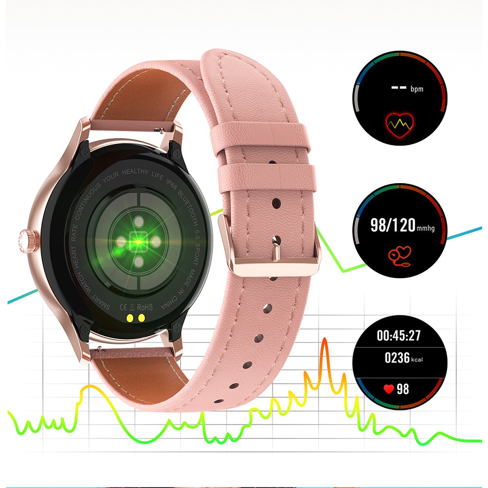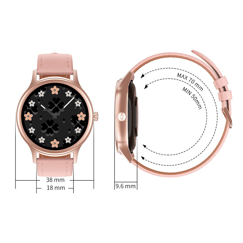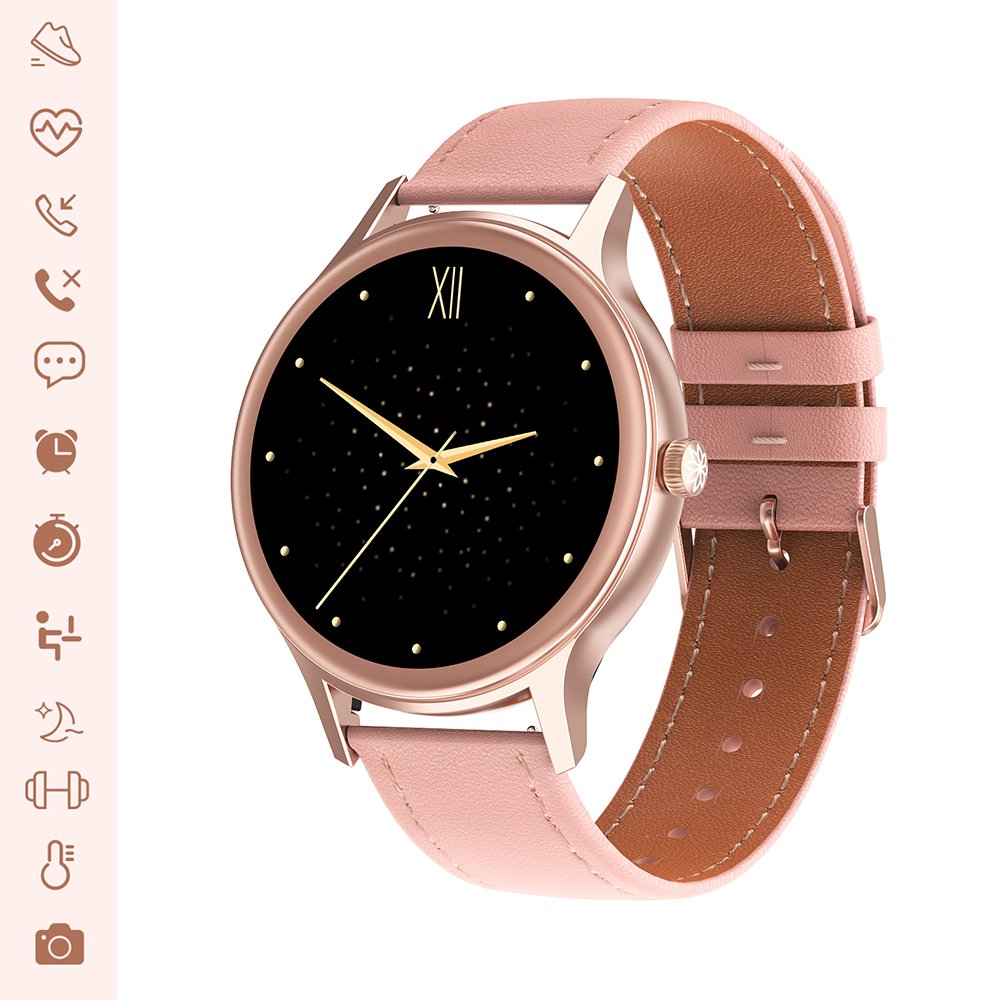 Montre connectée suivi activité sportive IP67 Rose Gold bracelet façon cuir