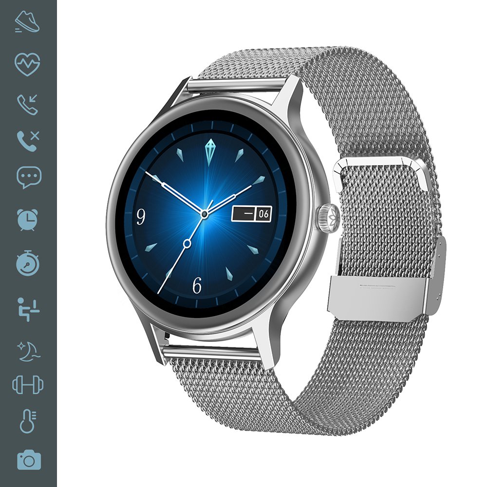 Montre connectée suivi activité sportive IP67 Argent Bracelet Métal
