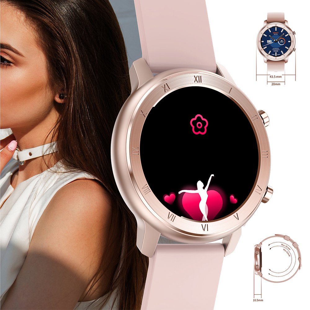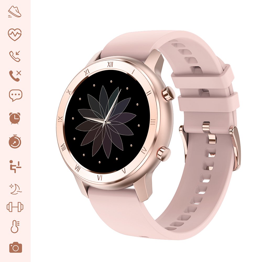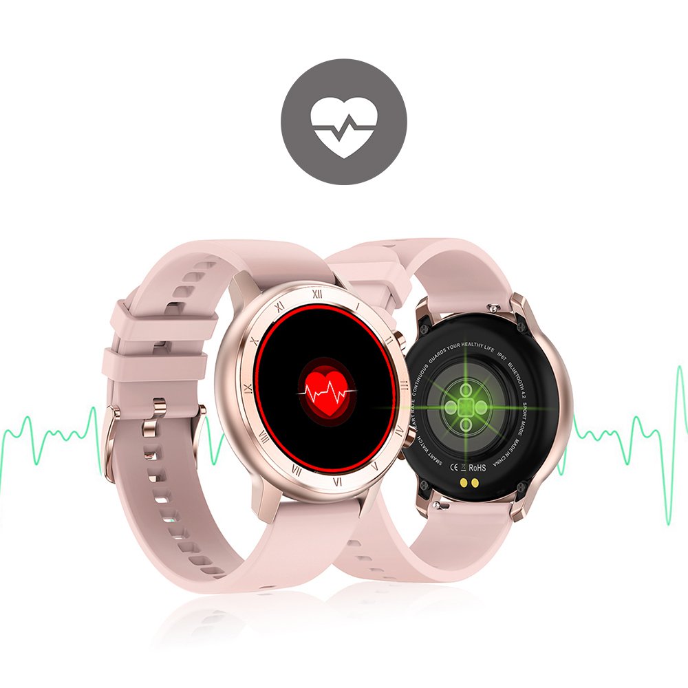 Montre connectée IP68 avec mesure de pression artérielle et suivi du sommeil rose gold avec bracelet en silicone