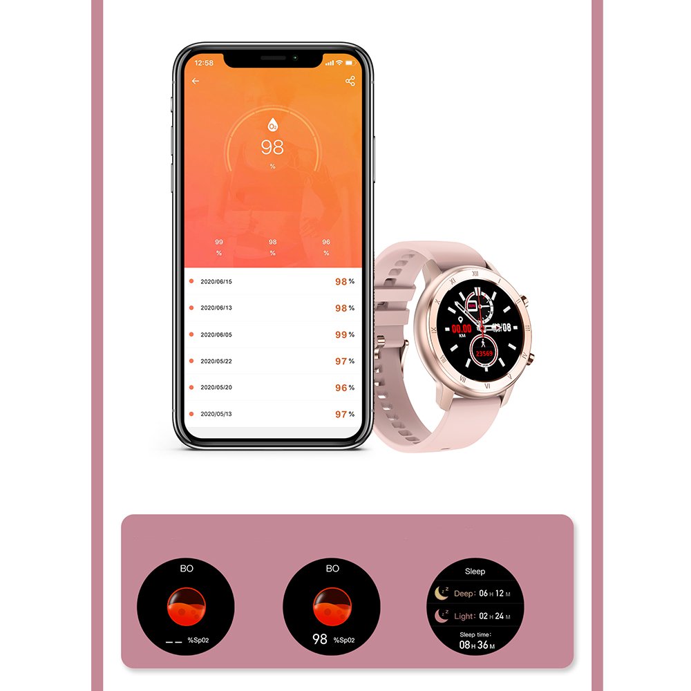 • Montre connectée IP68 avec mesure de pression artérielle et suivi du sommeil rose gold avec bracelet en silicone