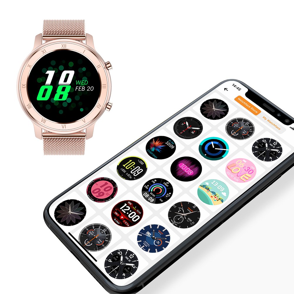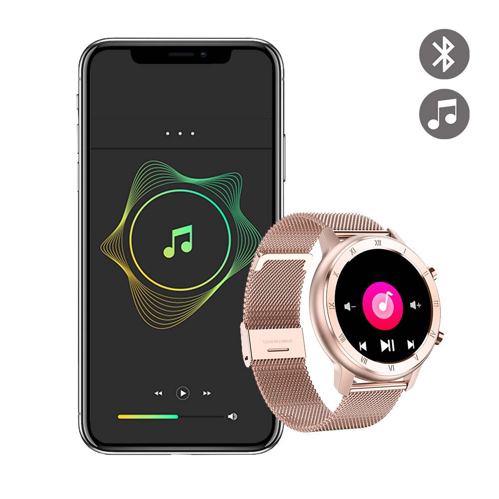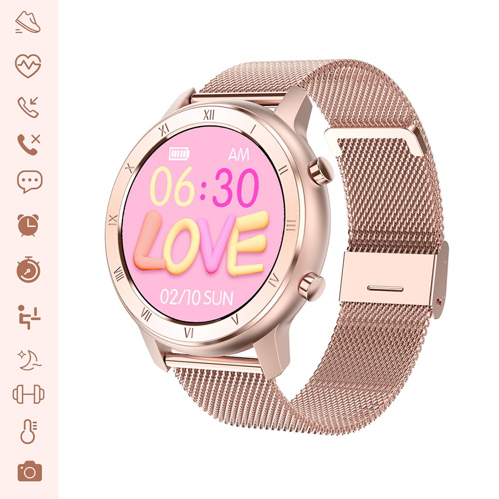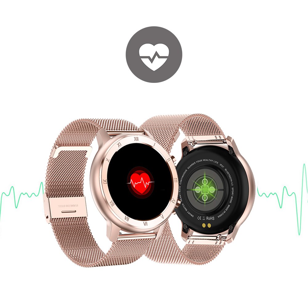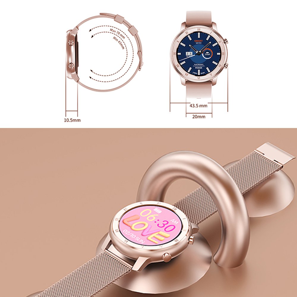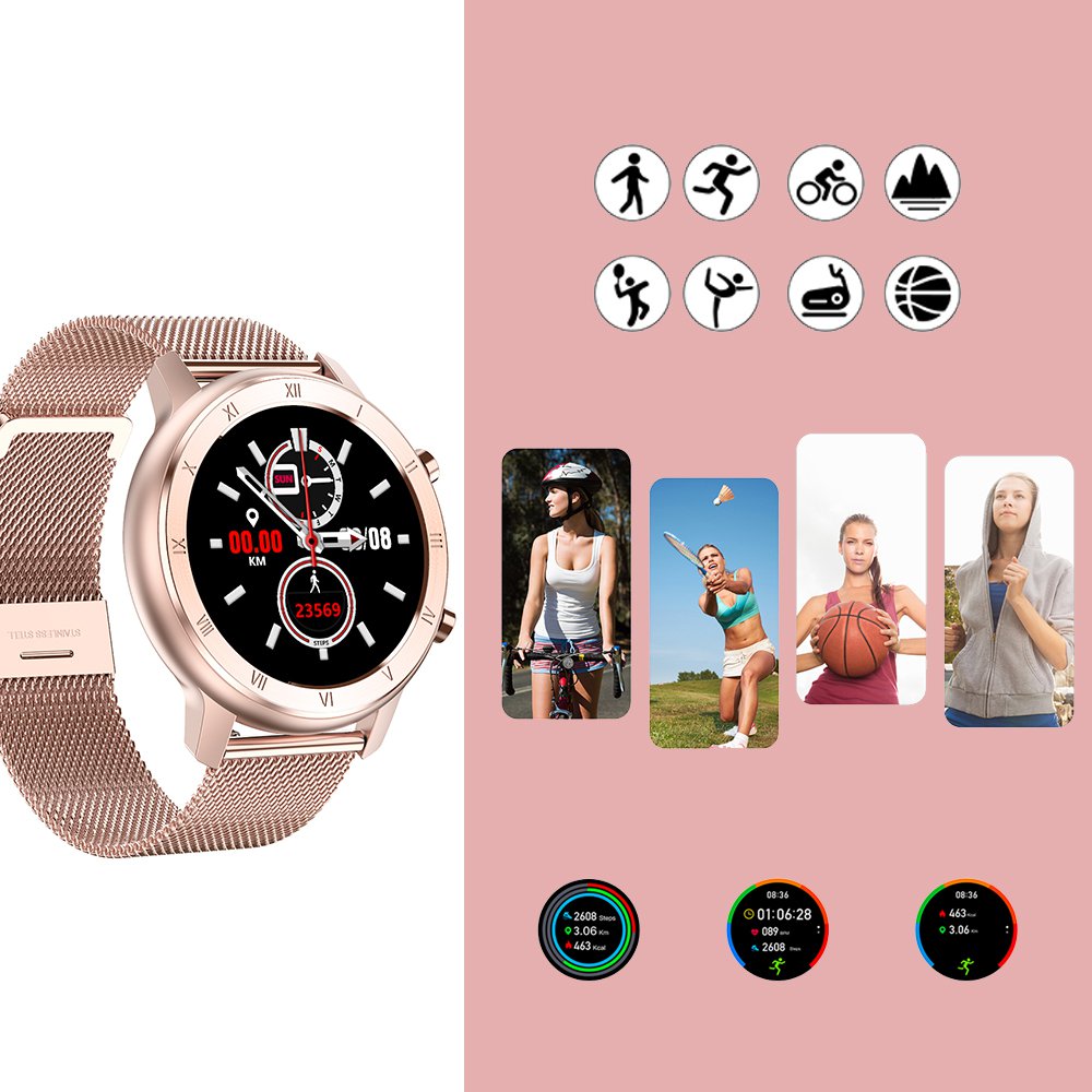 Montre connectée IP68 avec mesure de pression artérielle et suivi du sommeil rose gold avec bracelet en métal
