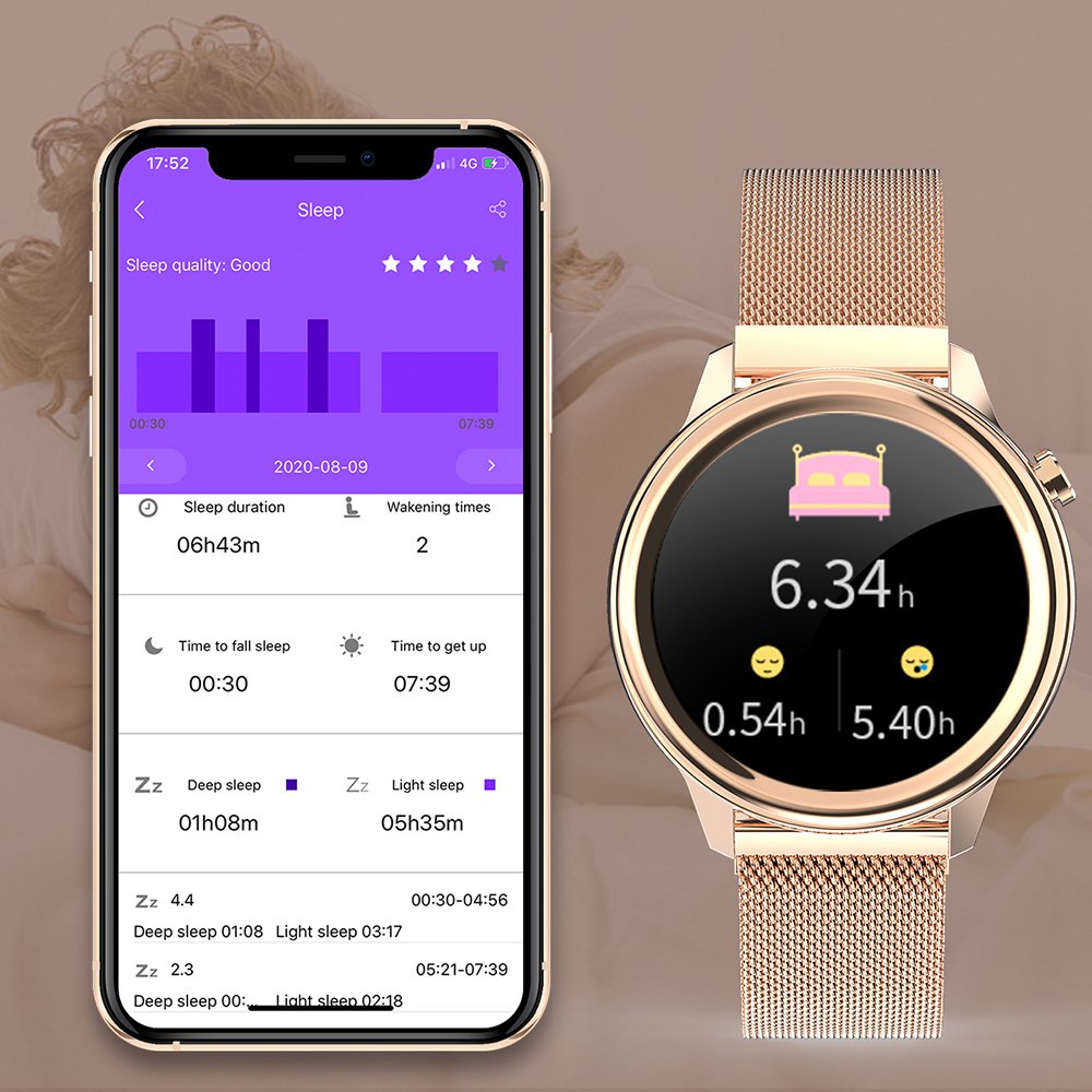 • Montre connectée féminine IP68 avec tracker de sommeil - ecrand diamant Or