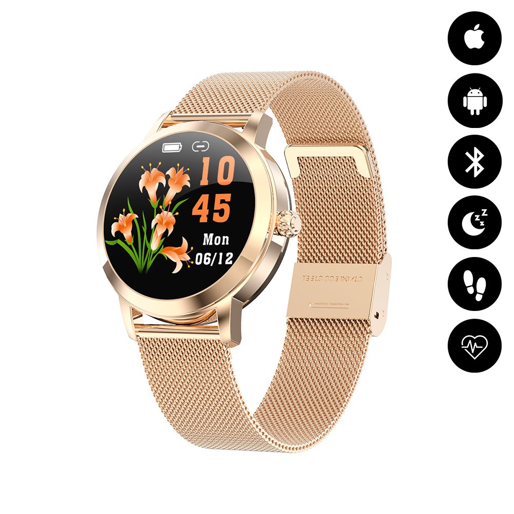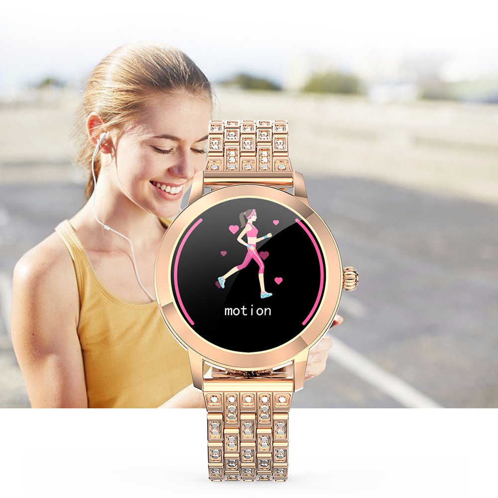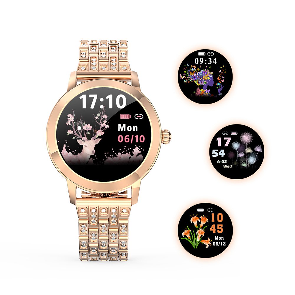 • Montre connectée féminine IP68 avec tracker de sommeil - ecrand diamant Or