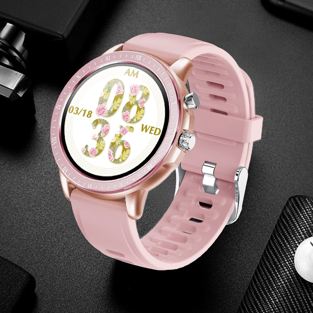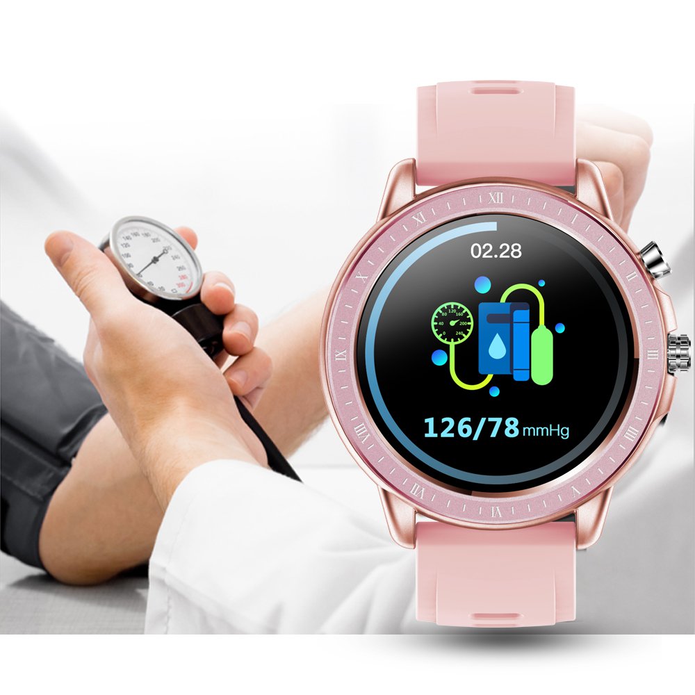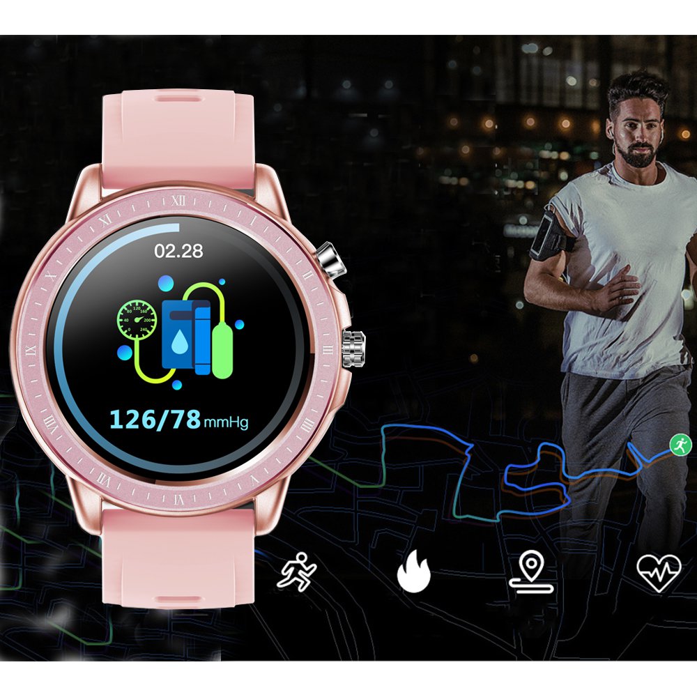 Montre connectée multi-sport,alerte sédentarité, surveillance du sommeil - Rose La montre dispose de nombreuses fonctions, elle vous permet de mesurer votre fréquence cardiaque de façon dynamique en temps réel, rappel d'appel, rappel d'informations, enregistrement d'exercice (comptage des pas, kilométrage, etc.),surveillance du sommeil, rappel sédentaire, calcul des calories, chronomètre, écran lumineux à la lever du poignet, faible consommation d'énergie, tension artérielle, oxygène sanguin, 23 modes sportifs tel que la danse, la course, le football, le yoga ......., contrôle de la caméra à distance, alarme intelligente, prévisions météorologiques, recherche de téléphone portable, commutateur multi-cadran, multi-langue, contrôle intelligent du temps de luminosité de l'écran.Synchronisez et vérifiez votre activité physique avec la montre. Vous pourrez mesurer vos pas, battements du coeur, pression artérielle, la distance parcourue et les calories dépensées. Également vous pourrez recevoir des notifications depuis votre smartphone, synchroniser vos données d’Activité et Sommeil. L’app du smartphone recueillit l’historique de vos données d’activité et sommeil quotidiennes/hebdomadaires/mensuelles. Téléchargez gratuitement l’app “Glory Fit” disponible pour iOS et Android.Caractéristiques techniquesÉcran tactile 1.3 pouces.Résolution: 240 x 240px.Capacité de la batterie: 170mAh.Bluetooth 5.0.Compatible avec iOS 8.0, Android 4.0 et supérieur.Waterproof: IP67.App: Glory Fit.