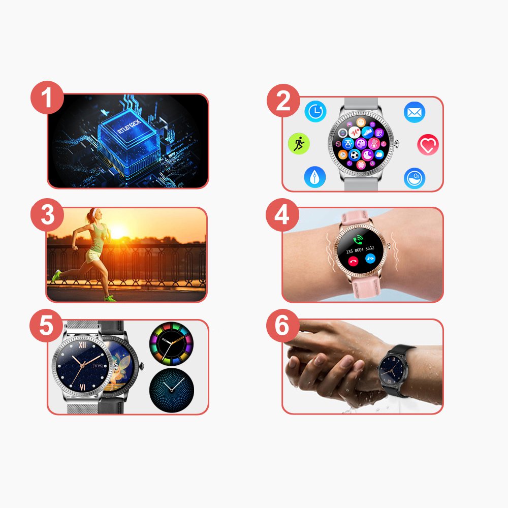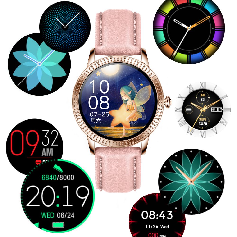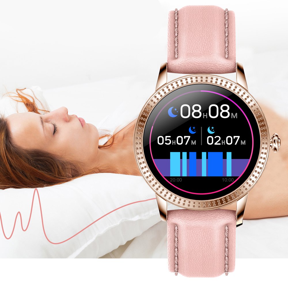 • Montre connectée féminine IP68 avec tracker de sommeil - ecrand diamant Or