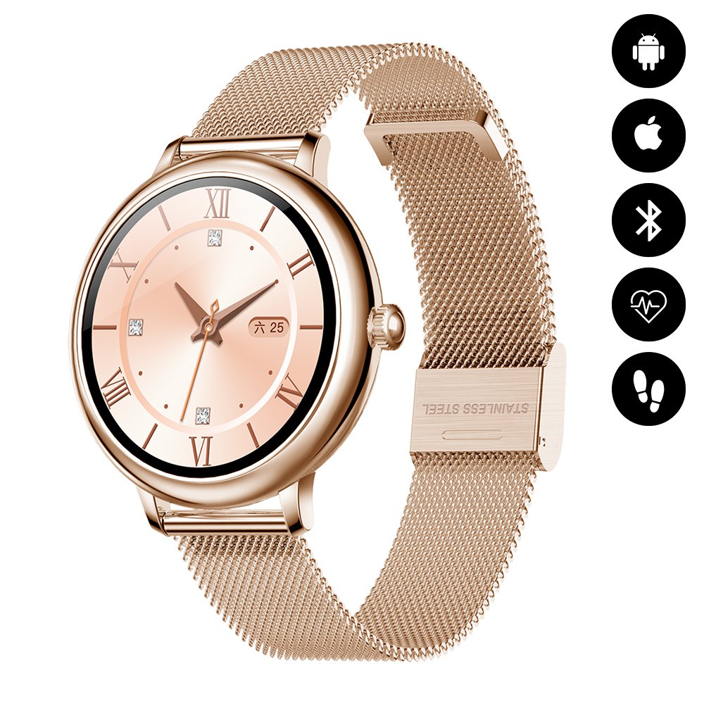 • Montre connectée avec suivi d'activités compatible iOs et Android - avec bracelet en metal Rose Gold