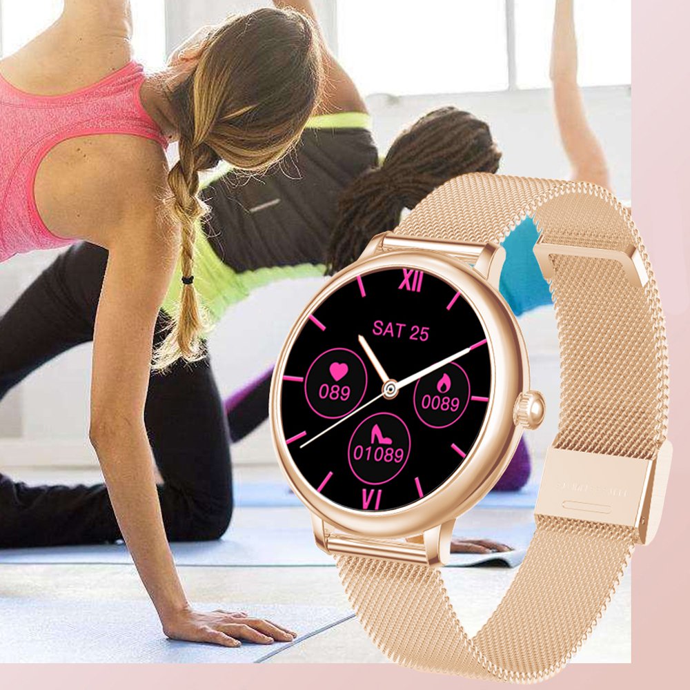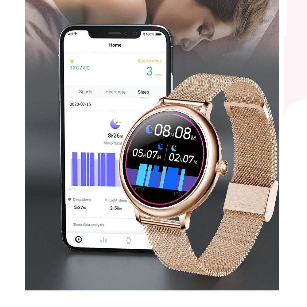 • Montre connectée féminine IP68 avec tracker de sommeil - ecrand diamant Or