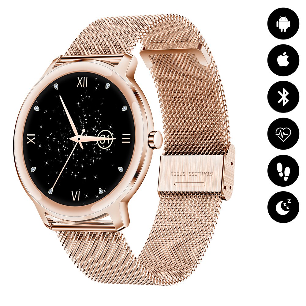 • Montre connectée avec suivi d'activités compatible iOs et Android - avec bracelet en metal Rose Gold