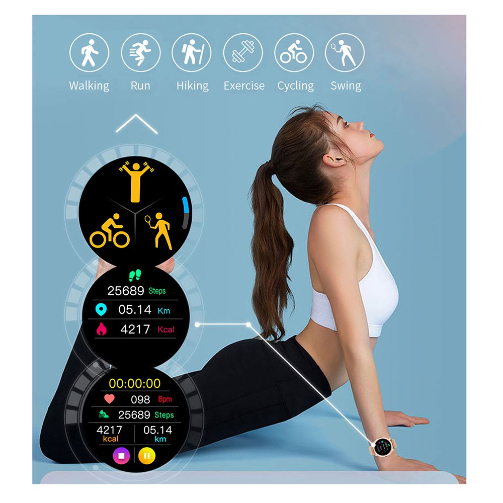 • Montre connectée féminine IP68 avec tracker de sommeil - ecrand diamant Or