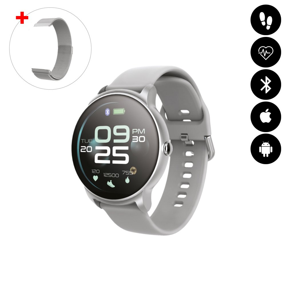 Montre connectée Bluetooth avec moniteur de fréquence cardiaque,surveillance du sommeil, suivi d'activité argent avc braceletoff