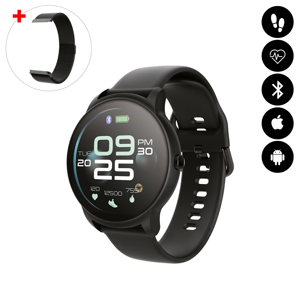 • Montre connectée multi-sport IP67 avec bracelet modifiable (silicone ou métallisé) Noir