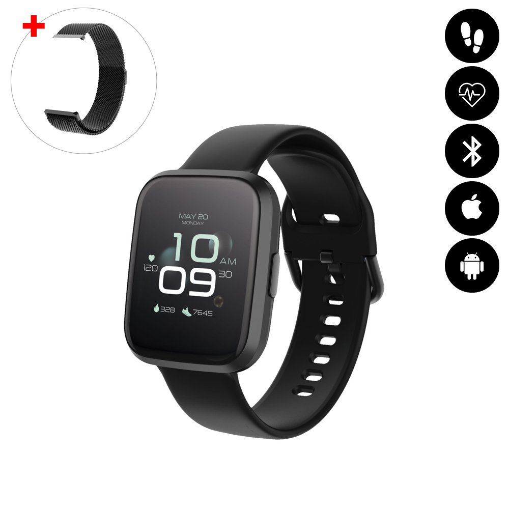 • Montre connectée multi-sport IP67 avec bracelet modifiable (silicone ou métallisé) Noir