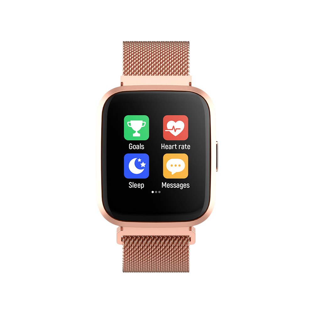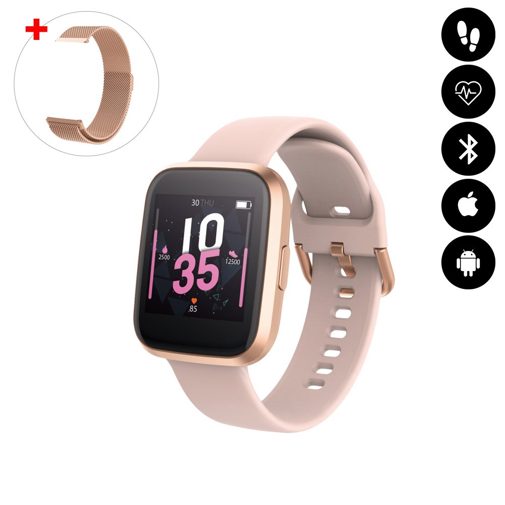 • Montre connectée multi-sport IP67 avec bracelet modifiable (silicone ou métallisé) Rose Gold